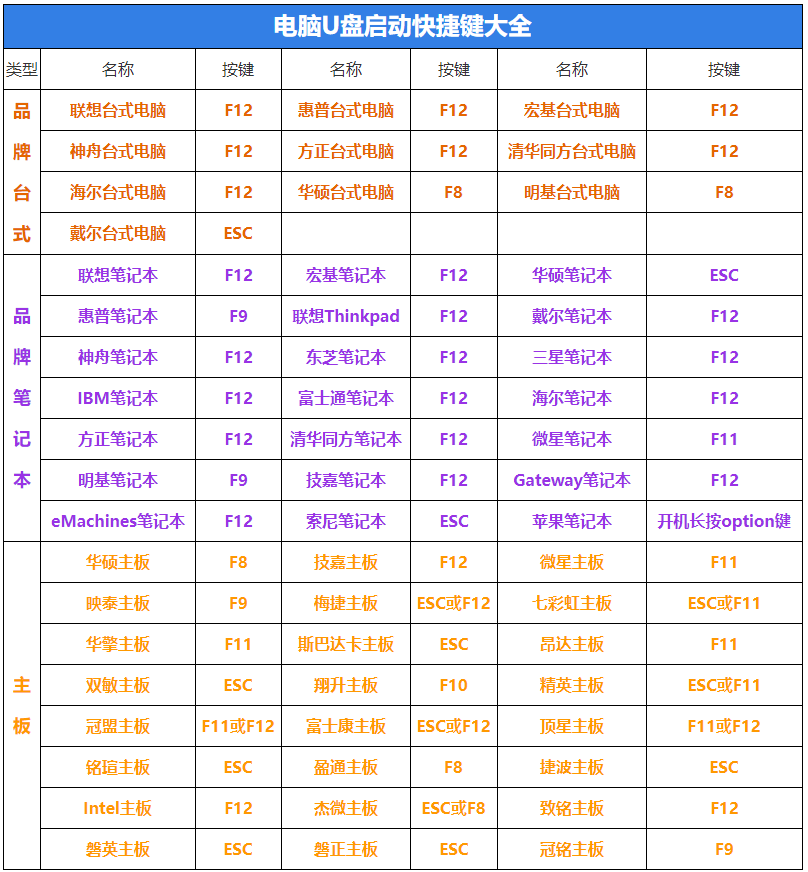 以上就是u盘启动快捷键的详细介绍,希望能帮助到大家.