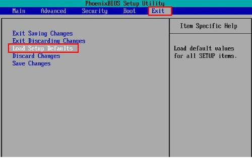 2、进入BIOS中,通过右方向键切换到“Exit”菜单,选择“Load Optimized Default”回车进入。