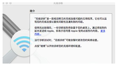 2.该工具可以帮助我们检测一些常见的wifi连接问题,并通过监视wifi连接来查找连接失败的原因,诊断完成后会出示一份诊断报告,我们将它发送到苹果设备当中。