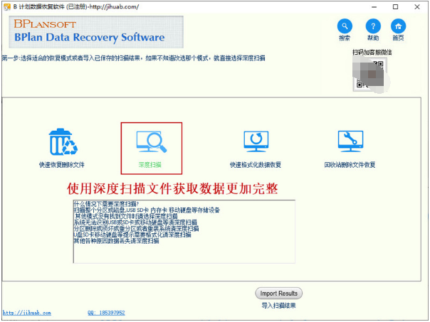 2、运行软件,点击“深度扫描”。