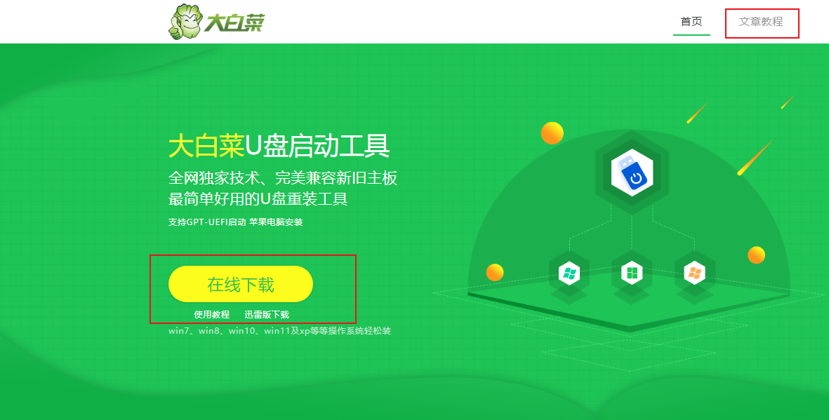 一、在浏览器下载大白菜超级u盘启动盘制作工具