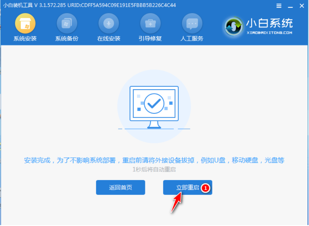 7、等待系统安装完成后,拔掉u盘重启电脑。