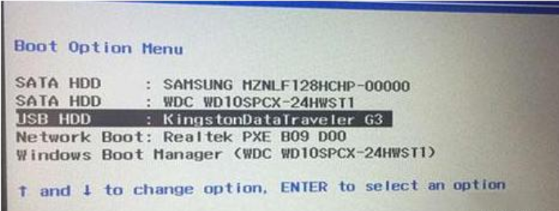 6.最终大家插进制做好的U盘启动盘,重启按F12或FN F12调出启动管理的窗口,选择USBHDD鉴别到U盘启动按回车键进到PE就可以应用u盘重装系统啦。