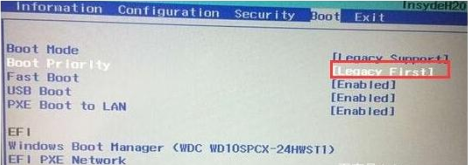 4.这时,大家将BootPriority设置为LegacyFirst,随后依据F10在发生的窗口中选择yes。