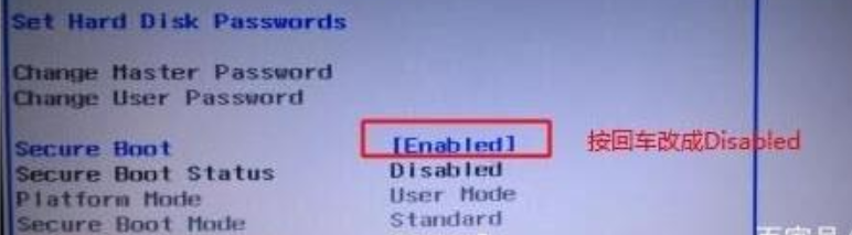 1.按F2或(FN F2)进到启动页的BIOS,进入该页后,按方向键切换“安全”选项,点一下“安全”Boot】按回车键改动成【Disabled】