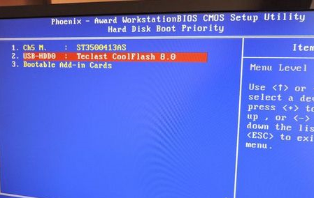 4、选择USB-HDD按加减号或F5/F6或PageUP/PageDown,移动到第一位置,按F10回车重启即可U盘启动;