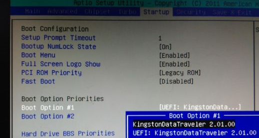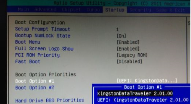 7、按ESC返回,再选择Boot Option #1回车,选择U盘选项回车,按F10保存重启即可。