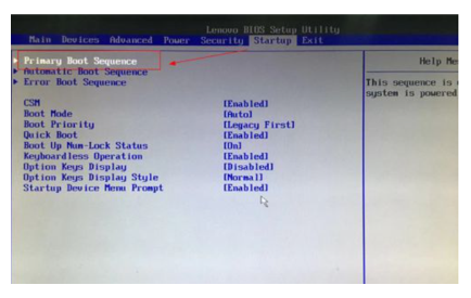 5、切换到该界面后,选择第一个选项,即Primary Root Sequence 为主要启动顺序。