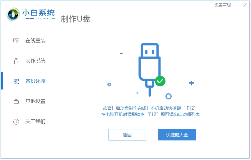 3、等待软件自行制作启动盘完成后,先预览需要安装的电脑主板的启动热键,然后再拔除u盘退出。