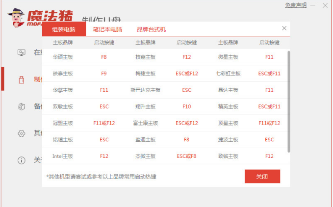 5、查看安装的电脑主板的启动快捷键,确定好快捷键后然后再拔出u盘退出。