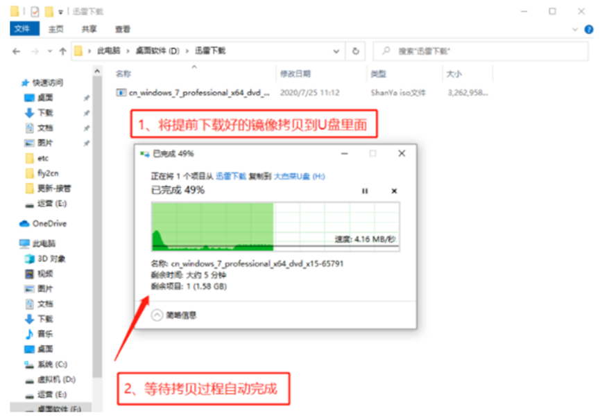 8、下载完成后,找WIN7 ISO/GHO镜像拷贝到U盘目录。