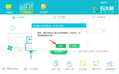 3、在选择制作U盘启动盘时,上面的很多操作都是根据提示来操作。软件会提醒用户备份U盘中的数据,防止数据丢失造成损失。