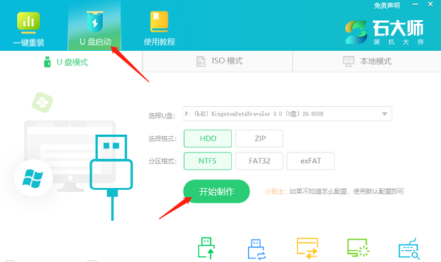 1、打开对应的软件,点击U盘启动,然后开始制作。
