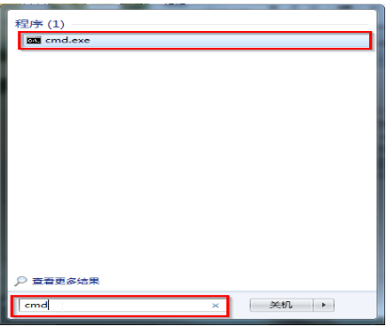 1.点击“开始”→在开始界面中的搜索框中输入“cmd”→并按下回车键。如图1所示: