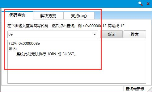 您可以将电脑的蓝屏代码记下来,然后下载蓝屏代码查询工具,将代码放入工具的查询框中进行搜索查询,查询到结果之后,根据给出的方案进行处理即可。