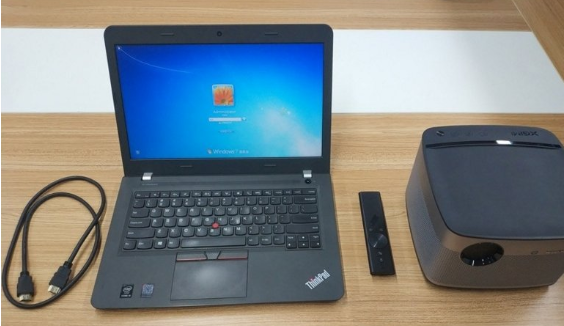 步骤一:启动投影仪和笔记本电脑,用HDMI高清线将投影仪的视频输入接口连接到笔记本电脑的视频输出接口;