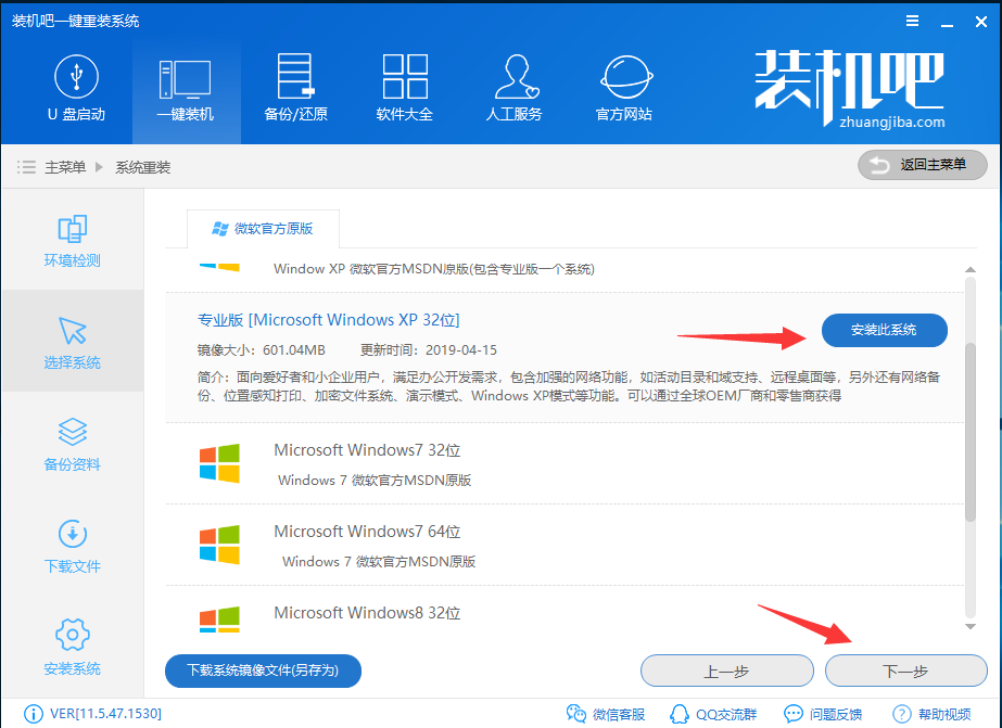 4.在出现的系统镜像选择界面中点击xp系统,然后再点击安装此系统按钮,进入下一步。
