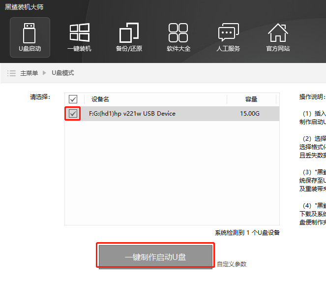 2、之后在界面中,勾选U盘设置,再点击一键制作启动U盘。