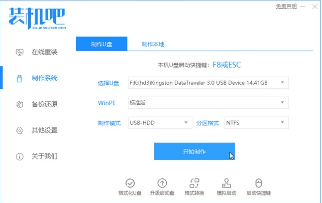 2,选到你的U盘,接着选择“USB-HDD”模式,点击“开始制作”进入下一步。