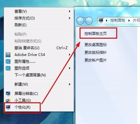 1、首先我们进入电脑的控制面板主页,控制面板可通过桌面鼠标右键选择个性化,在个性化中进入控制面板主页,或者从电脑左下角的控制面板进入。