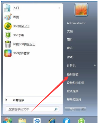 1、打开开始菜单,点击控制面板
