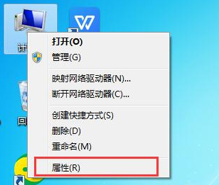 1.右击电脑桌面上的电脑图标,选择弹出菜单中的属性选项,打开属性菜单。