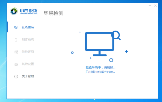 1.首先下载小白一键重新安装系统,然后双击打开该工具,然后等待环境检测,如下图所示: