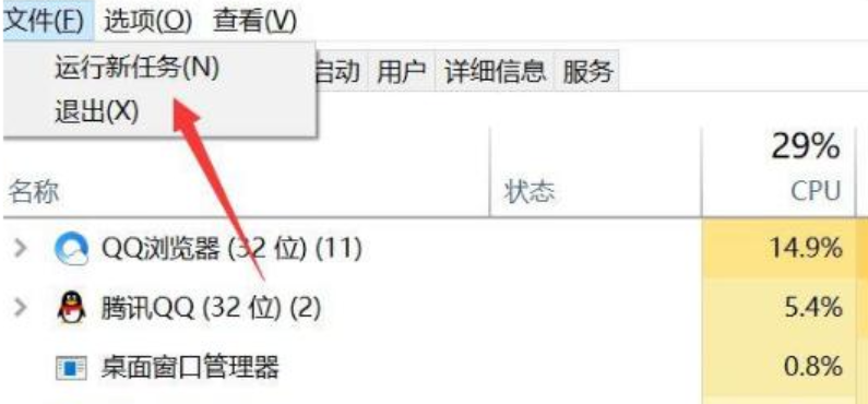 2、点击“文件”选项,点击出现的“运行新任务”。