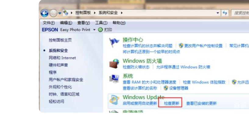 3、在Windows update下点一下“查验升级”,进入下一步。
