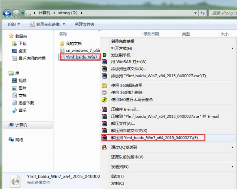 1、、首先在网上下载一个雨林木风win7系统镜像,然后使用压缩软件将雨林木风win7系统镜像解压出来,注意下载和解压到C盘。