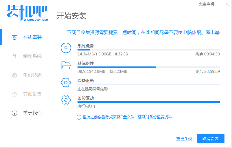 使用装机吧在线一键重装系统win7: