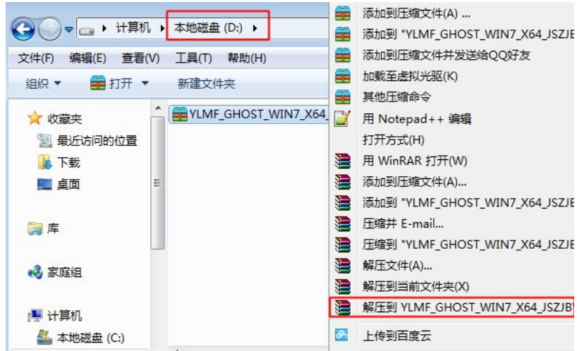 1、雨林木风win7系统下载后是iso格式的文件,要下载到C盘之外的分区,比如D盘,右键使用WinRAR等软件解压出来。