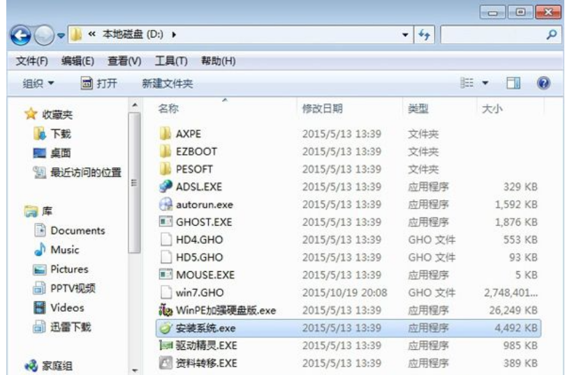 2、不要解压到C盘或桌面,解压后的win7系统安装文件。