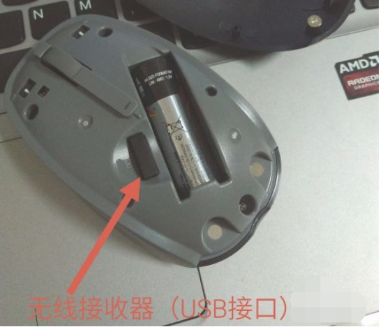 1、打开无线鼠标的盖子,装入电池,取出无线接收器,撕开绝缘条。