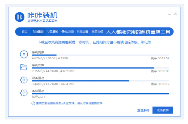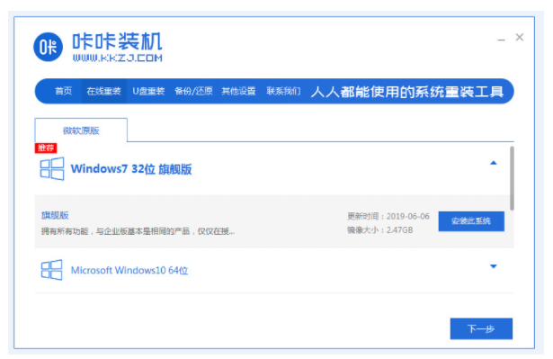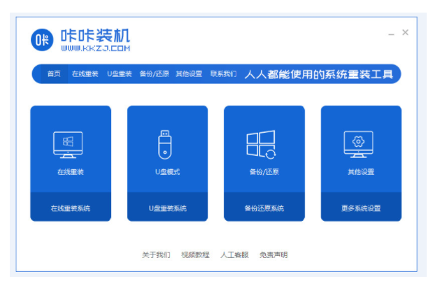 1、下载并运行咔咔装机软件。