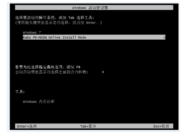 5、选择第二项“KaKa...”,回车进入pe系统。