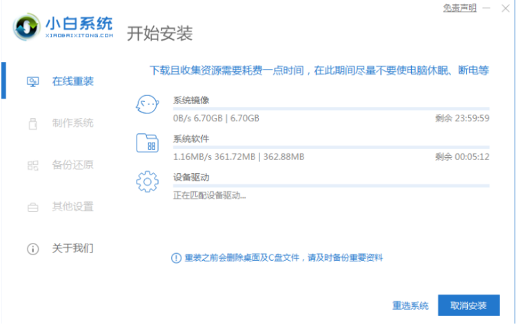 5、进入pe系统之后,小白装机工具将会开始安装win10专业版系统,耐心等待。
