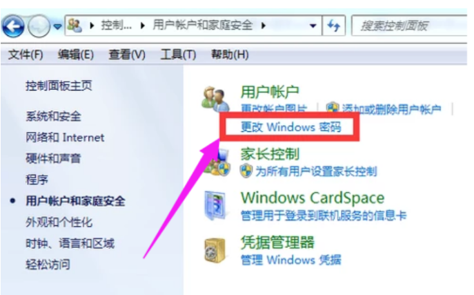 步骤二:此时在控制面板中打开用户帐户和家庭安全。