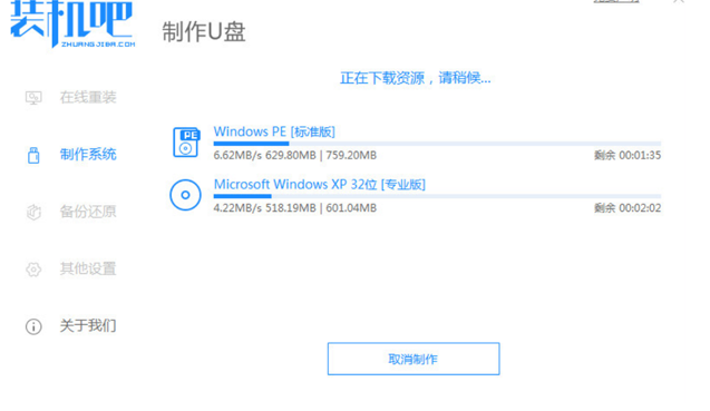 1、下载安装装机吧工具软件,插入U盘,选择点击制作系统。