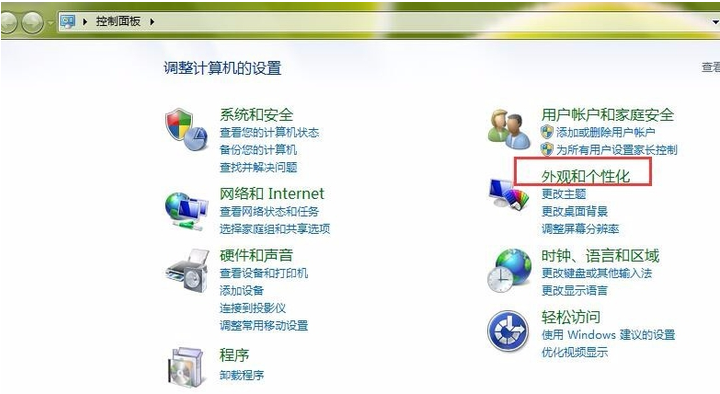 2、选择【外观和个性化】即可。