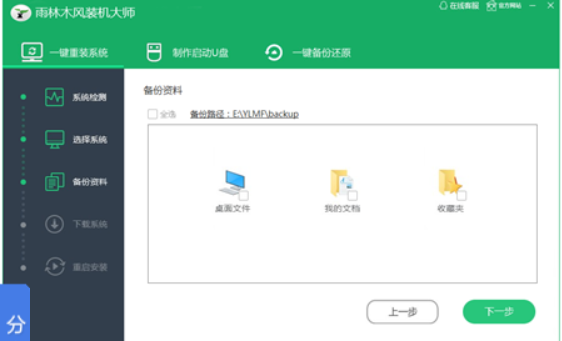 2、点击一键重装系统,进行系统环境检测,勾选自己需要备份的数据。