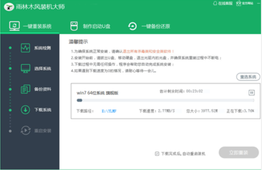 5、进入到下载系统文件的操作,我们耐心等待。下载完成之后,点击立即重启。