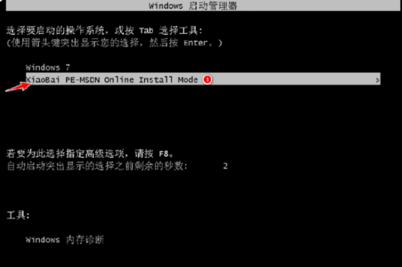 4、选择xiaobai pe系统进入。