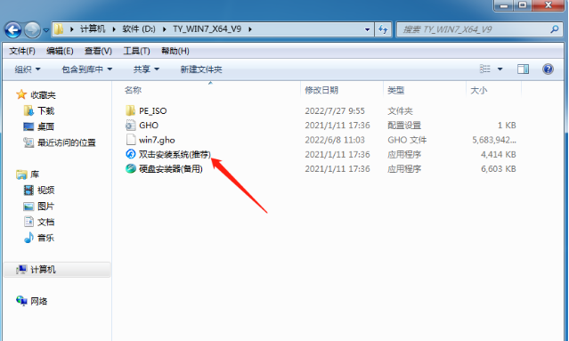 3、点开解压后的系统镜像文件夹,点一下“双击安装系统”。