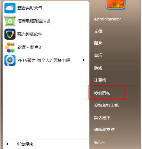 1、首先我们先点击电脑左下角的“开始”按钮,菜单栏选择“控制面板”选项。
