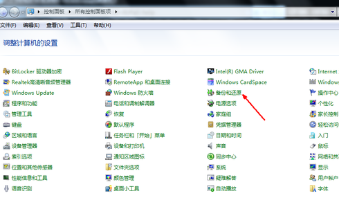 1、首先在开始菜单中打开控制面板,再打开备份和还原选项。