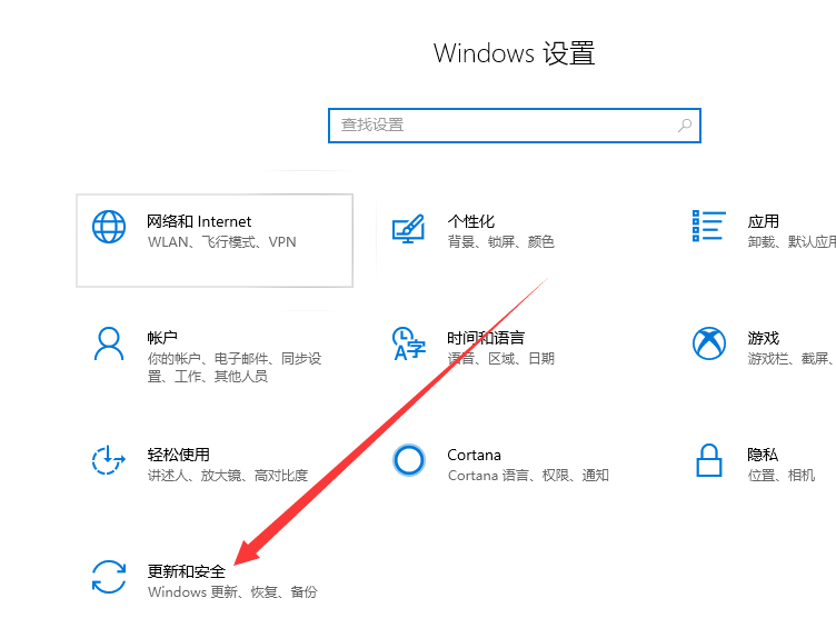 1、win+i快捷键打开设置,选择更新和安全