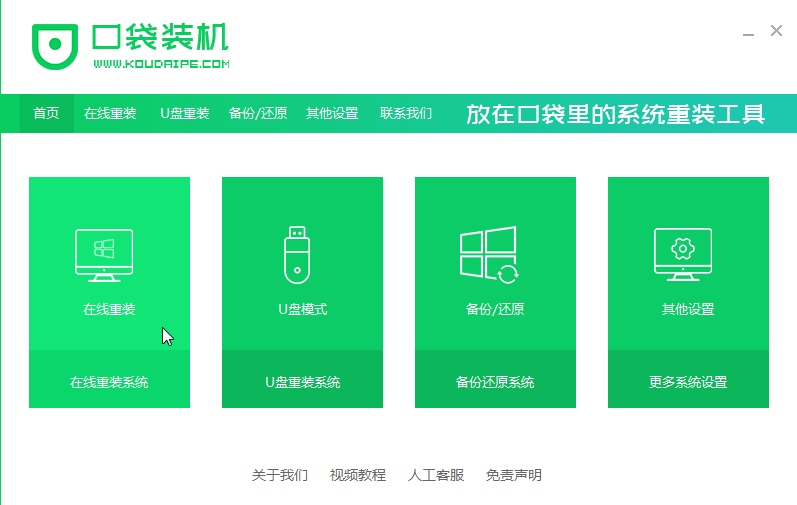 1、我们先下载一个叫口袋装机的工具,这个工具简单好用,是装系统的不二帮手。