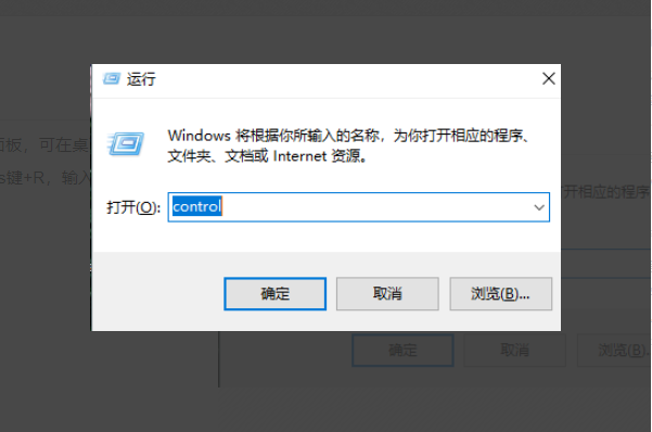 1、首先,我们打开控制面板,可在桌面找到,也可以通过按Windows键+R,输入control进入。