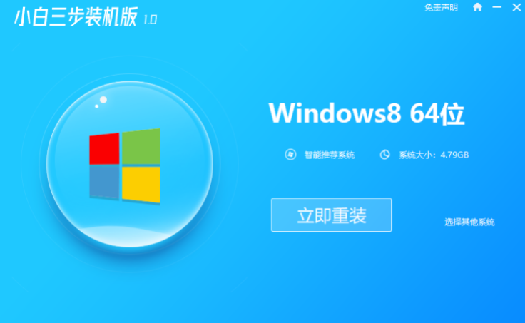 1、首先我们需要打开浏览器,在页面中搜索小白系统官网,然后点击下载小白三步装机版软件,下载后打开软件,选择win8系统,点击立即重装按钮。